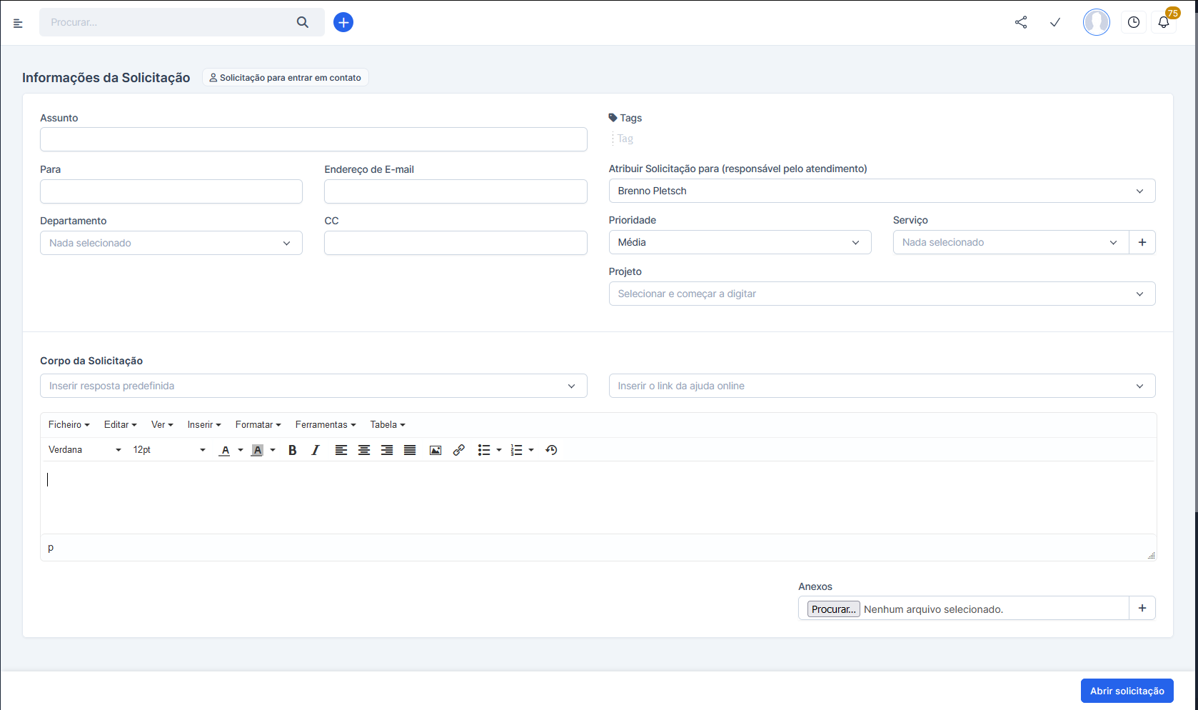Atribuir Solicitação para (responsável pelo atendimento): Campo onde será definido o operador responsável por essa solicitação;